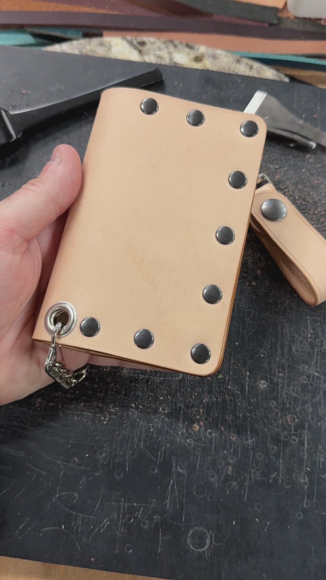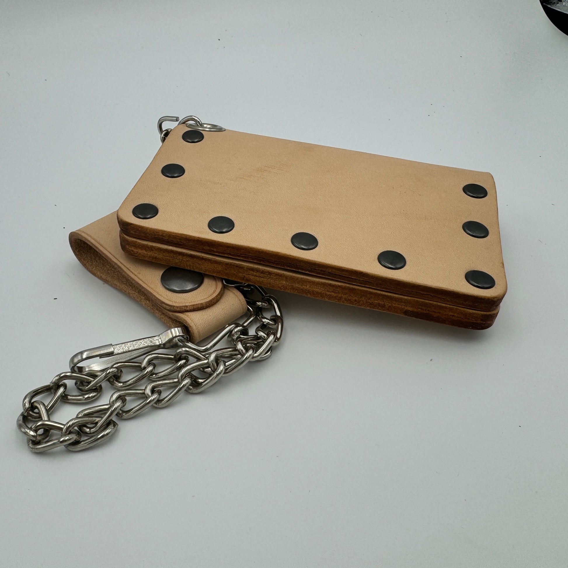 Veg Tan Biker Bifold Chain Wallet - Natural Vegetable Tanned Cowhide Leather with Rivets